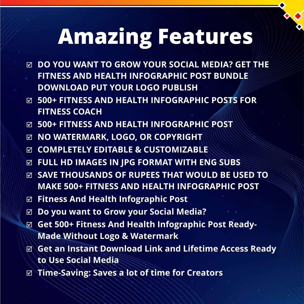 - ✅SAVE THOUSANDS OF RUPEES THAT WOULD BE USED TO MAKE 500+ FITNESS AND HEALTH INFOGRAPHIC POST